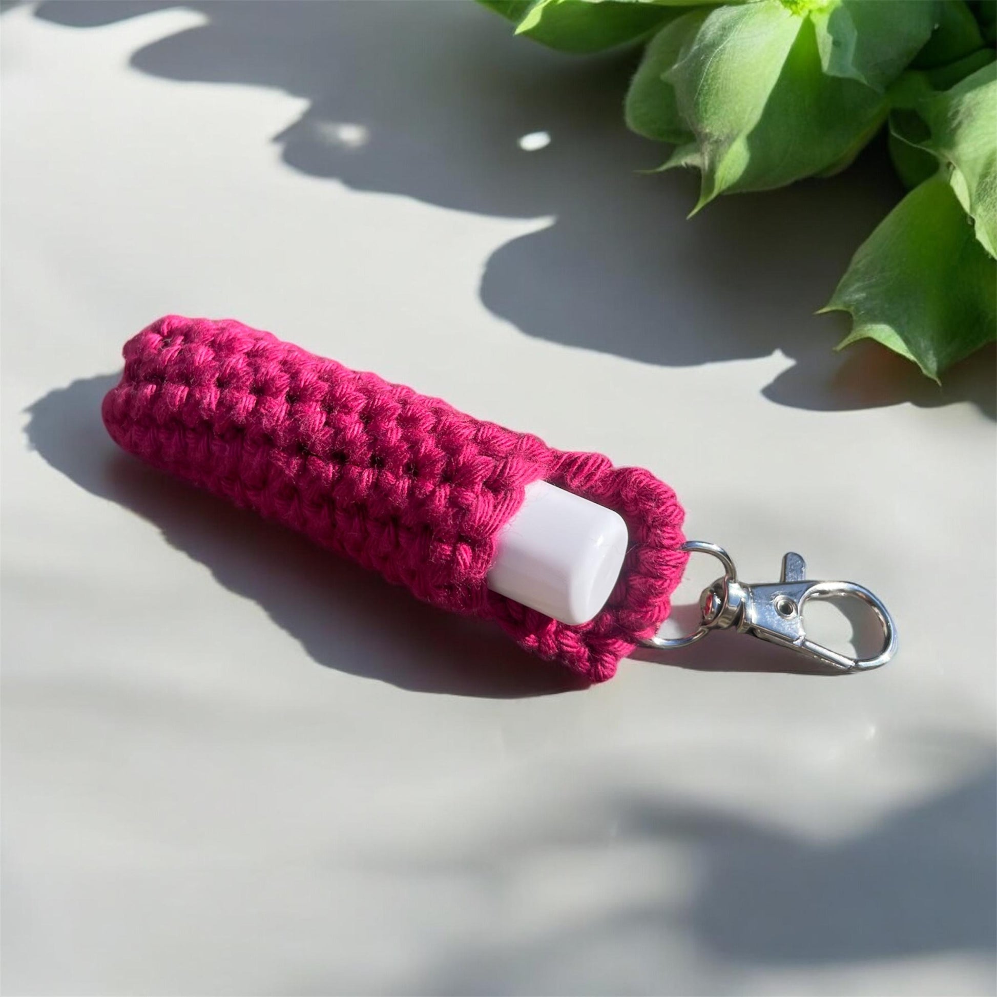 Crochet Lip Balm Holder Keychain – Handmade Accessory – Chapstick Cozy – StitchCraft and Sorcery